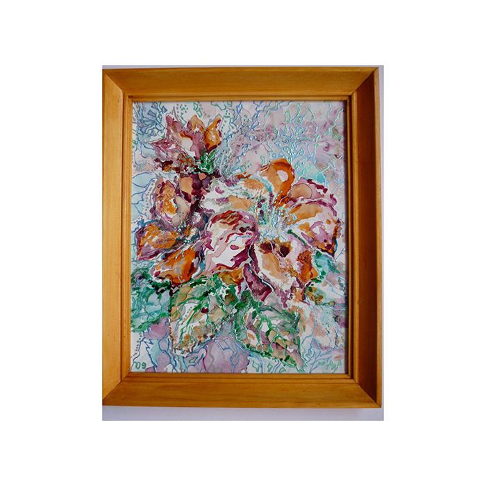 Картина на рисувана керамика в дървена рамка. Размерът на картината е - 20 см на 25 см.