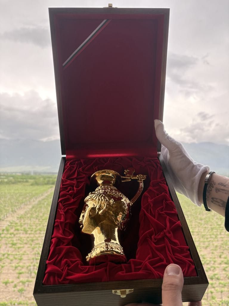 Репликата се продава в луксозна дървена кутия, ръчно изработена, подплатена с вишнево червено кадифе от вътрешната страна и специално изработено легло за амфората.