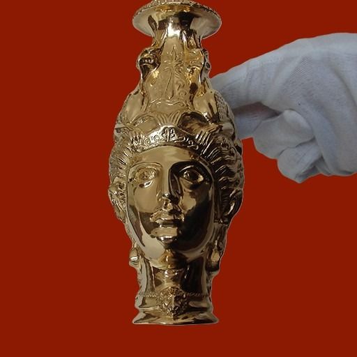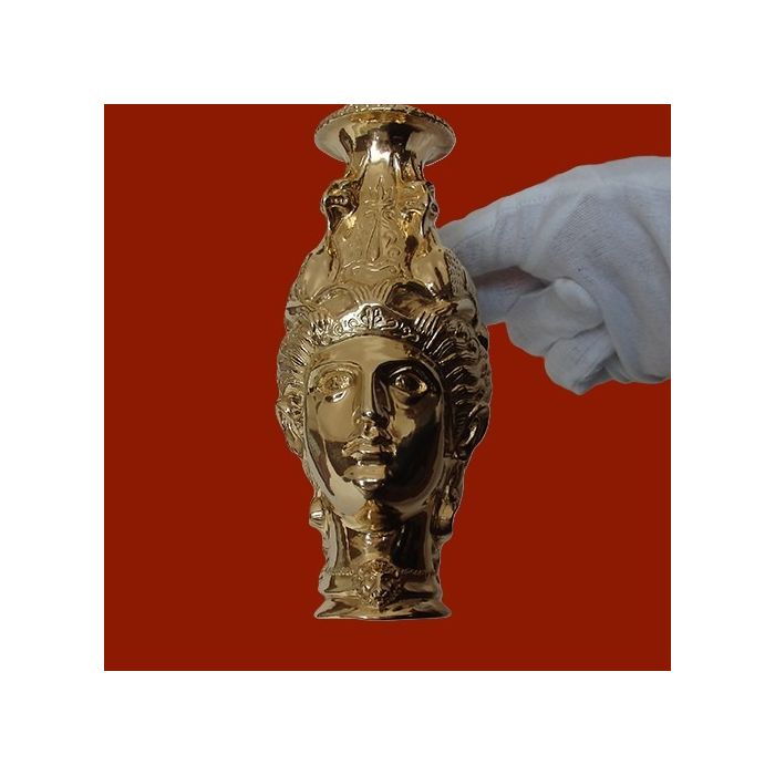Репликата е изработена по галваничен път от мед и е изцяло позлатена с 24 к злато. Репликата на ритона с глава на амазонка може да се изработи изцяло от сребро проба 999,9 и да се позлати с 24 каратово злато. Снимка 3 и 4. Ритонът, изработен от сребро е напълно годен за употреба. Цената зависи от цената на среброто и златото в деня на поръчката. Вместимостта на съда е 500 мл, височината е 20 см и широчината 10 см . Репликата се продава в луксозна дървена кутия, ръчно изработена, подплатена с кадифе от вътрешната страна и специално изработено легло за амазонката. Изработва се по поръчка. Срок на изпълнение 5 работни дни.