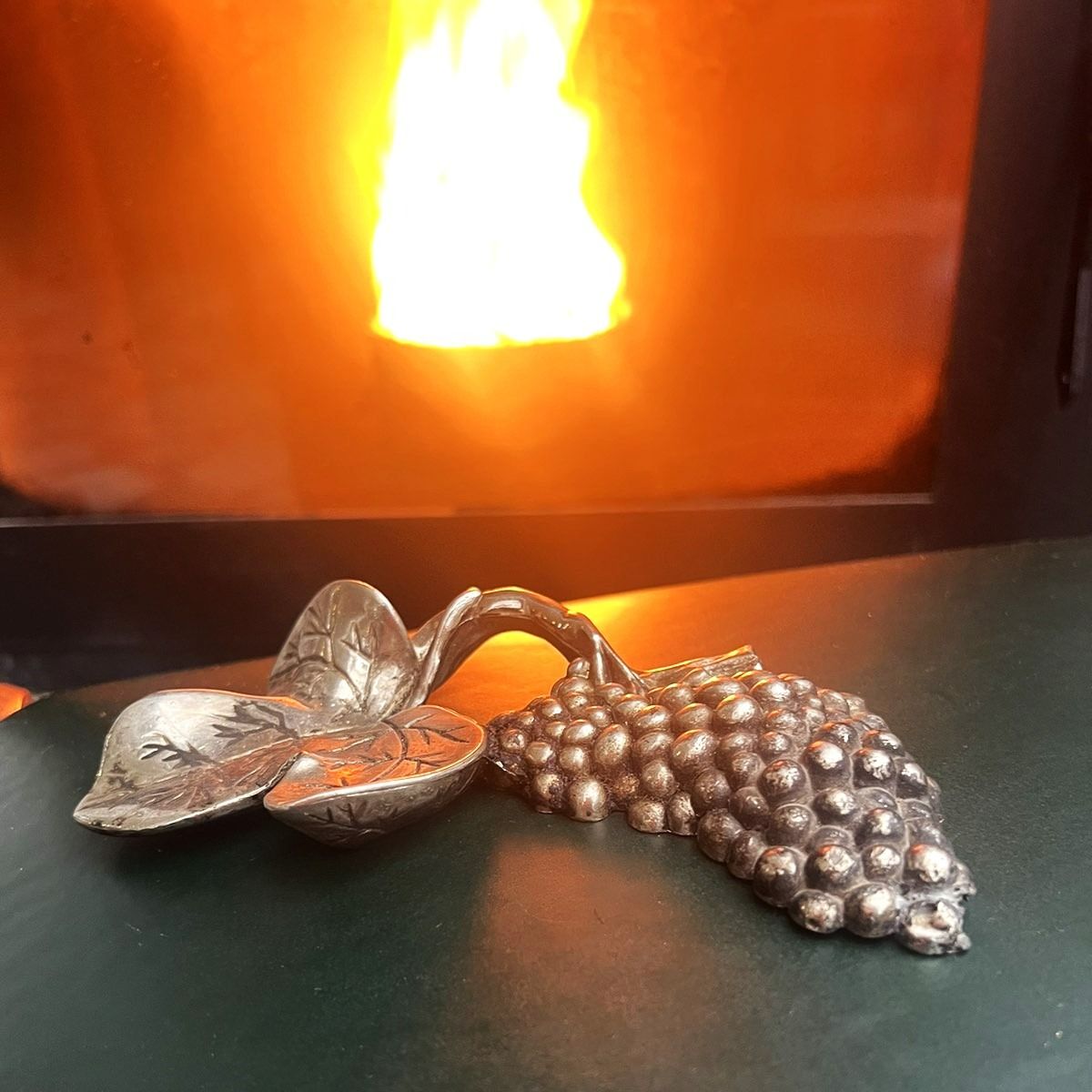 Металната пластика на грозд с лозов лист е антикварен предмет, произведен в началото на 20 век във Франция. Посребрен.