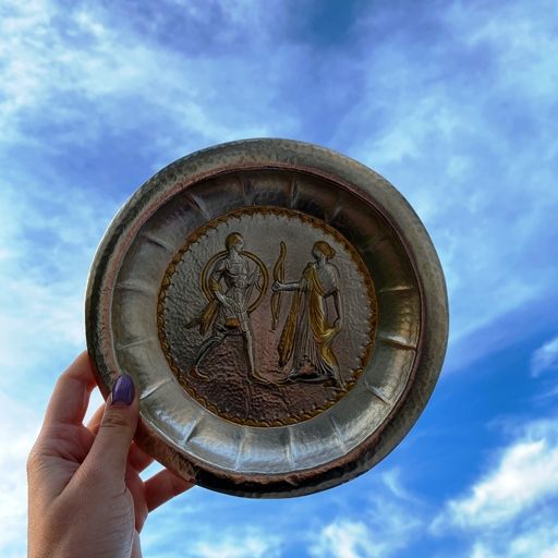 Авторска фиала, изработена от мед, посребрена и частично позлатена, изобразяваща сина на троянския цар Приам и неговата съпруга Хекуба - Парис и древногръцката богиня Артемида. Тази фиала ни връща в древните времена на митични създания и романтични и конфликтни сцени между хора и богове.