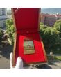 Сувенирът се предлага опакован в ръчно изработена дървена луксозна кутия.