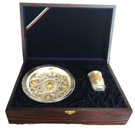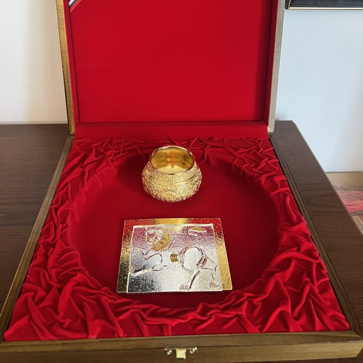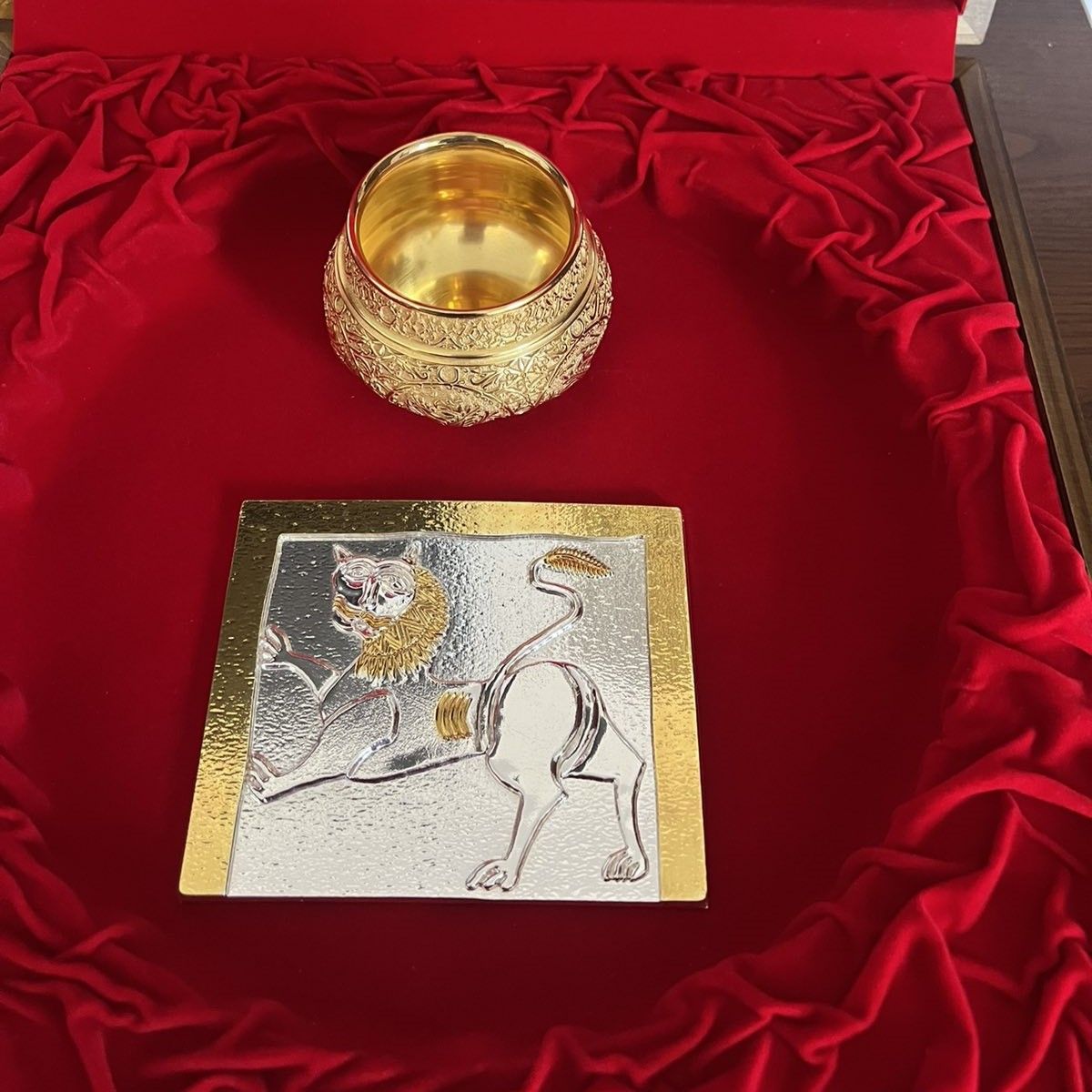 Български лев - комплект реплики - златната чаша на Аспарух и посребрено и позлатено пано ва българския лъв