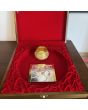 Комплектът е опакована в ръчно изработена и тапицирана дървена кутия.