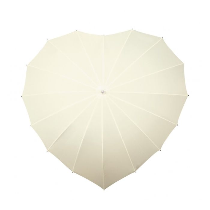 Елегантен и оригинален бял чадър във формата на сърце.