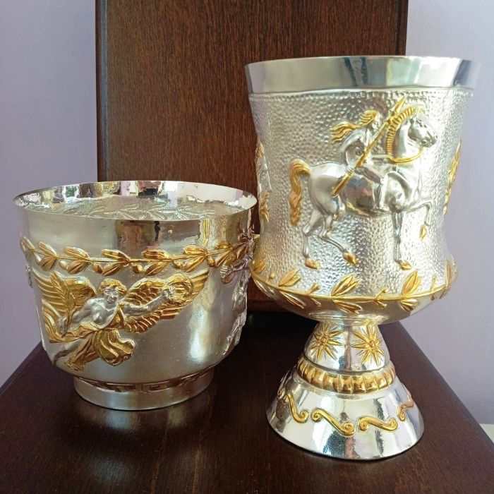 Богове и императори - Комплект сребърни бокали на победат, който се състои от Сребърния бокал на победата с богинята Нике и Чашата на Филип Македонски