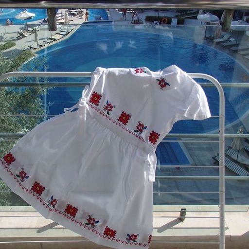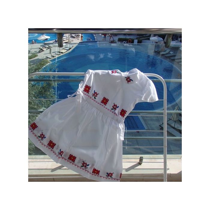 Детска рокличка с ръчно бродирани мотиви от българската шевица