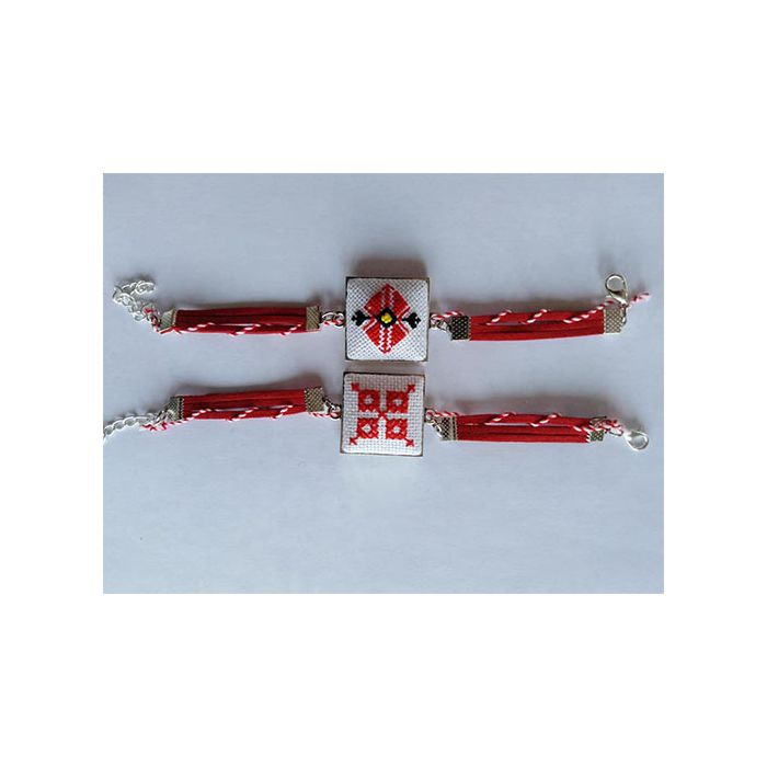 Ръчно изработена мартеница във формата на гривна с бродирани мотиви от българската шевица