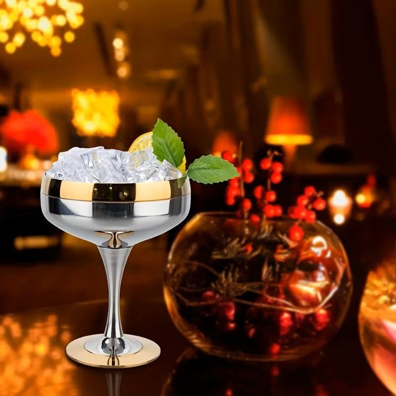 Чашата за шампанско е изработена от висококачествена неръждаема стомана със златен пръстен.