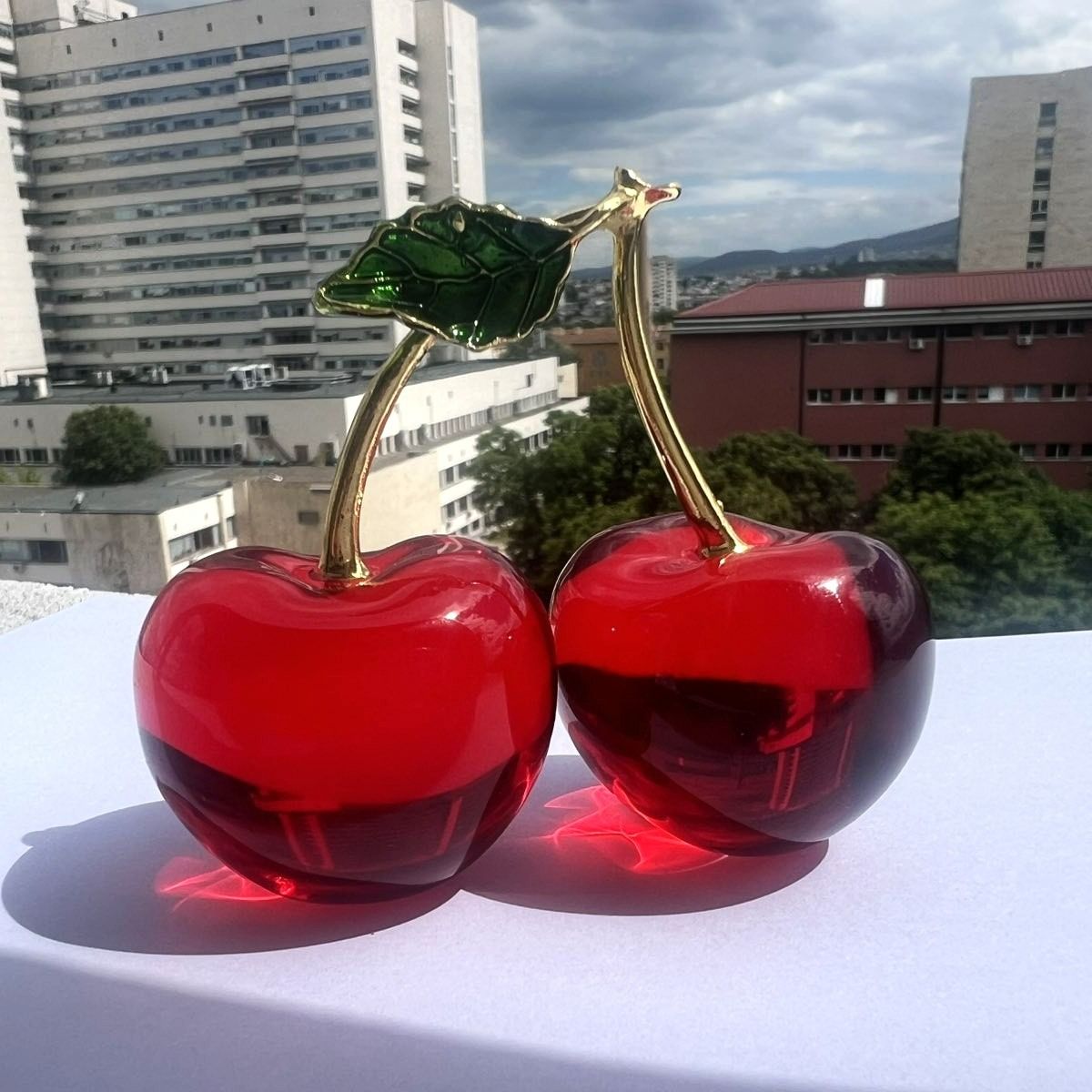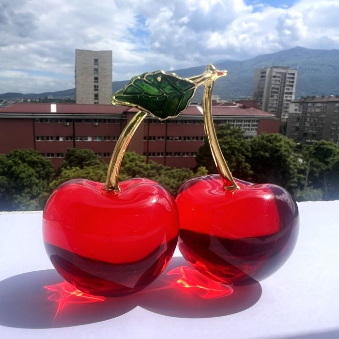 Ярки, красиви, цветни, съблазнителни са черешите, изработени от червен, зелен и златен кристал. Като малко витражно бижу от прозореца на античен дворец, но много по-жизнено, зареждащо, енергично и изкусително!