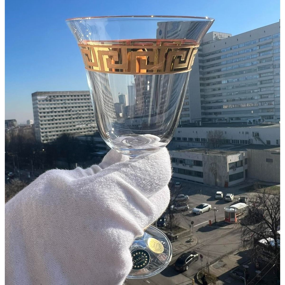 Кристалнате чаши за вино с рисуваните меандри -линията на живота със златен разтвор напомнят за трапезата на най-големите естети и аристократи през вековете. Чашите са изработени от чешките майстори в ателие, което продължава традицията на майсторите на кристала в Чехия. Класическа форма, овладян лукс и невероятна класа! Всичко, което е ниво на луксозния стандарт, недостижима елегантост и безупречен вкус!