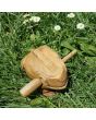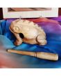 Жабата е ръчно изработена от дърво. Дължината й е 15 см, ширината, заедно с дървената пръчка - 17 см и височината - 10 см