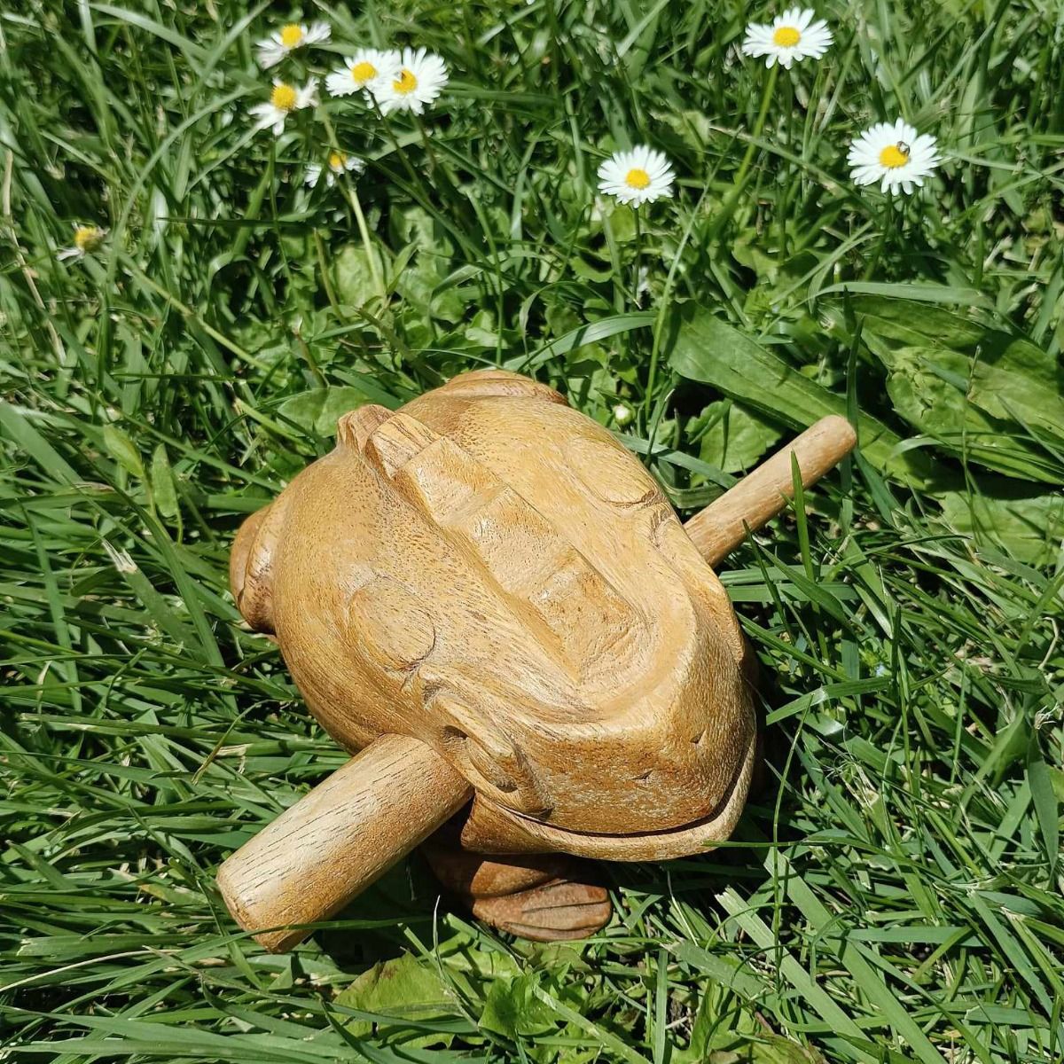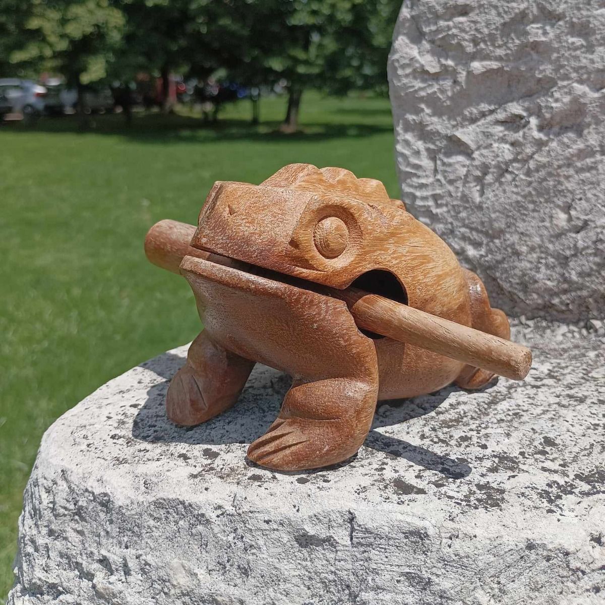 Жабата е изработена ръчно от дърво. На гърба й има "музикална стълбица" с осем дървени стъпала. С дървената пръчка, като се мине по гръбначната музикална стълбица, се издават различни тонове. Будистите вярват, че молитвите им ще бъдат чути, ако с пръчката се премине по гръбнака на жабата и се чуе характерния дървен звук на чутата от Бога молитва.
