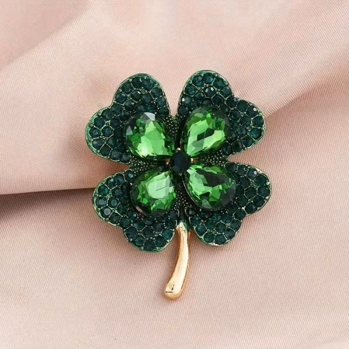 Детелина на щастието - брошка на четирилистна детелина от синтетични камъни, тип Сваровски