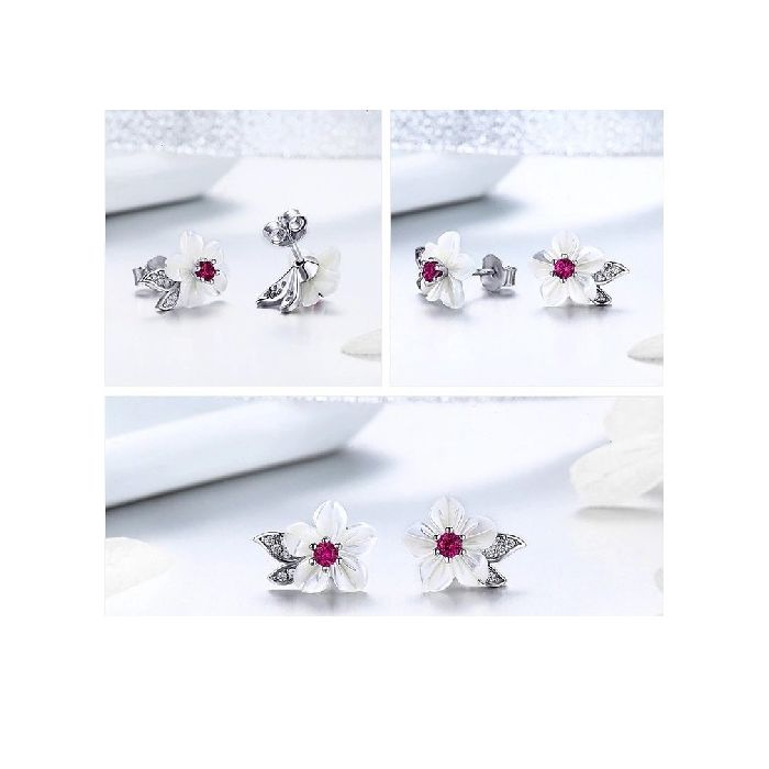 Красиви детски сребърни обеци 925 със седеф и цирконии под формата на малки цветя. Седефът е символ на семейството, разбирателството и чистите чувства. Преминавайки през една от осите на кристала, светлината се отразява и пречупва в следващия кристал, като по този начин се появява великолепният ефект с дветовете на дъгата. Нежно сребърно бижу за елегантните малки дами!