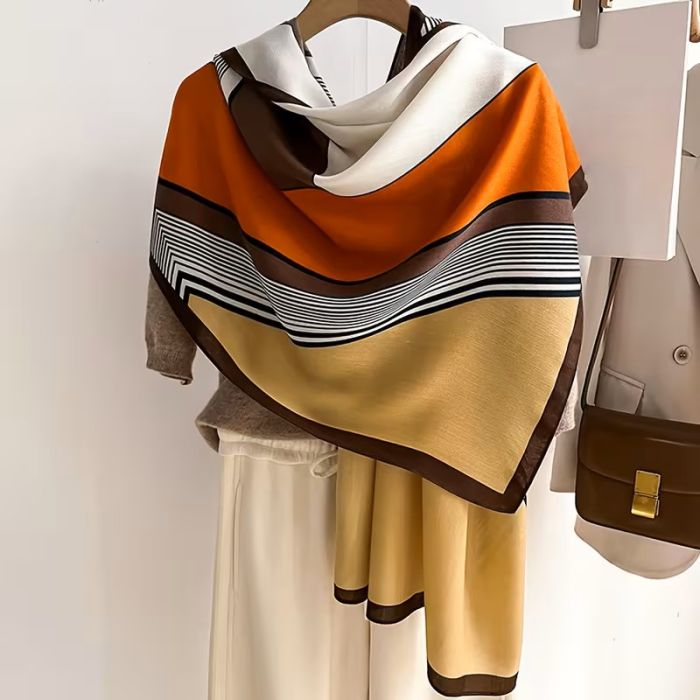 Елегантен копринен шал - Слънце и земя