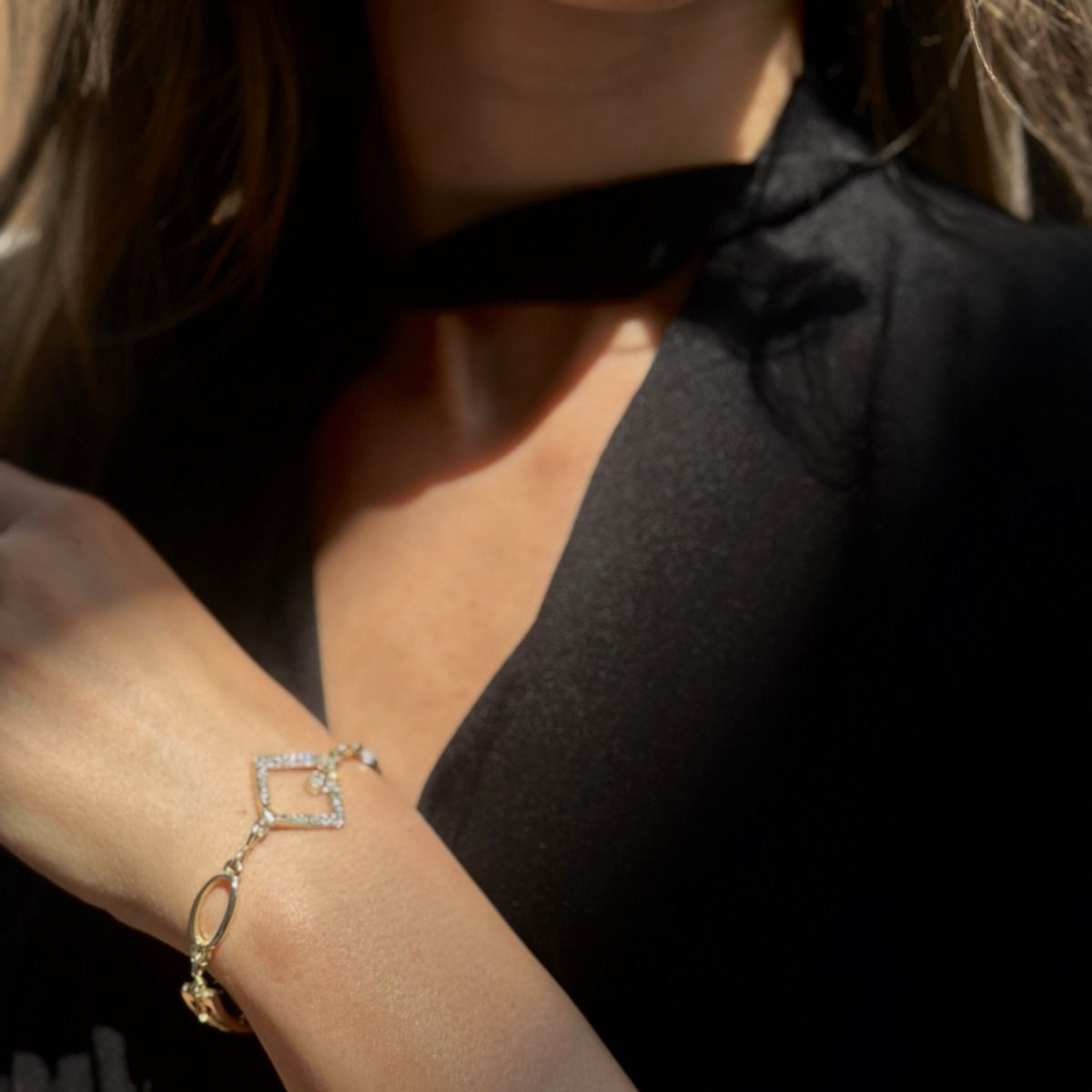 Елегантна и нежна гривна със синтетични циркони, със символа на същността .