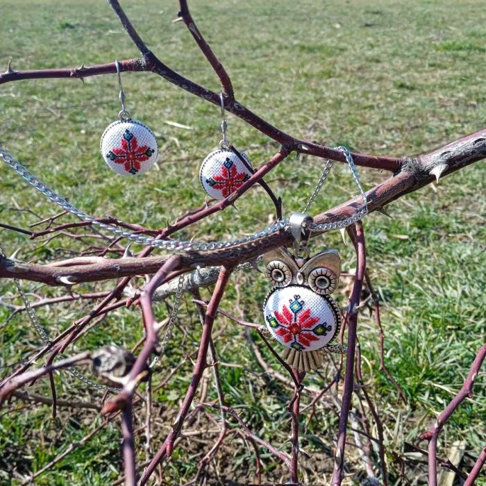 Етно комплект бродирани бижута "Бухалче"