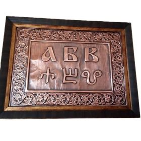 Албум за снимки с ръчно кована корица от мед с първите три букви от българската азбука - Крилица и Глаголица