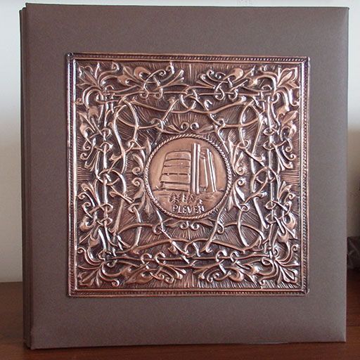 Фото албум с корица от ръчно кована мед с изображение от гр. Плевен