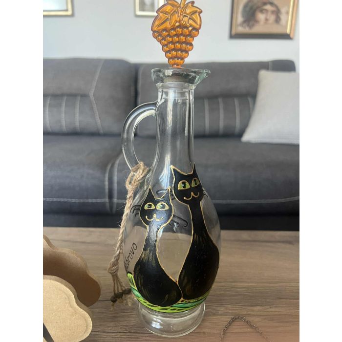 Габровски котки- Бутилка за ракия, ръчно рисувана