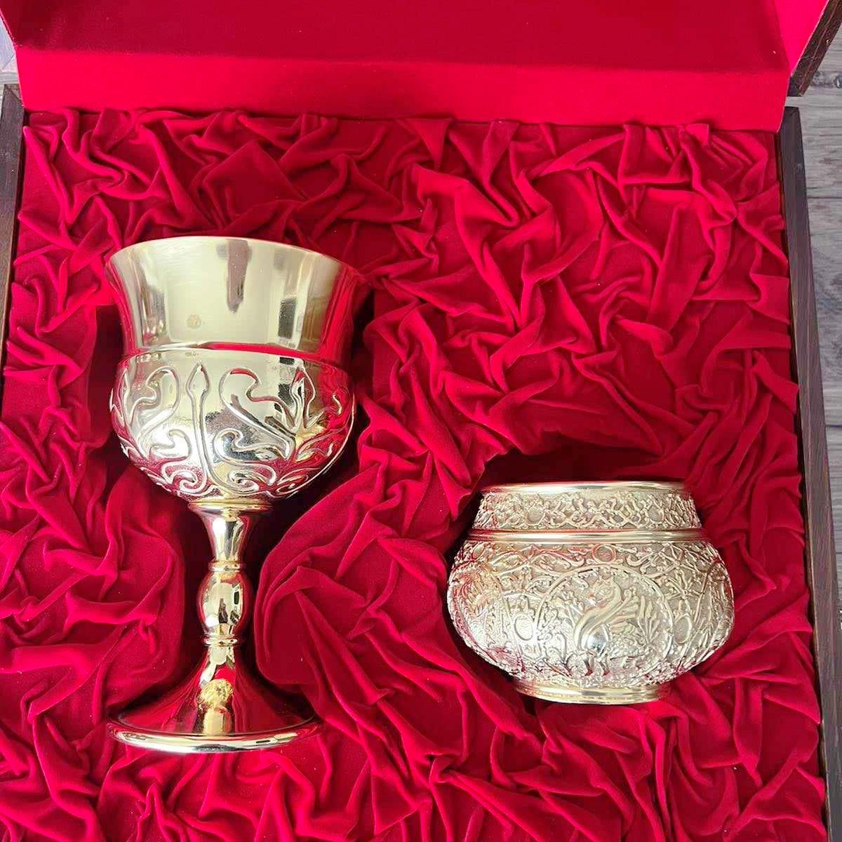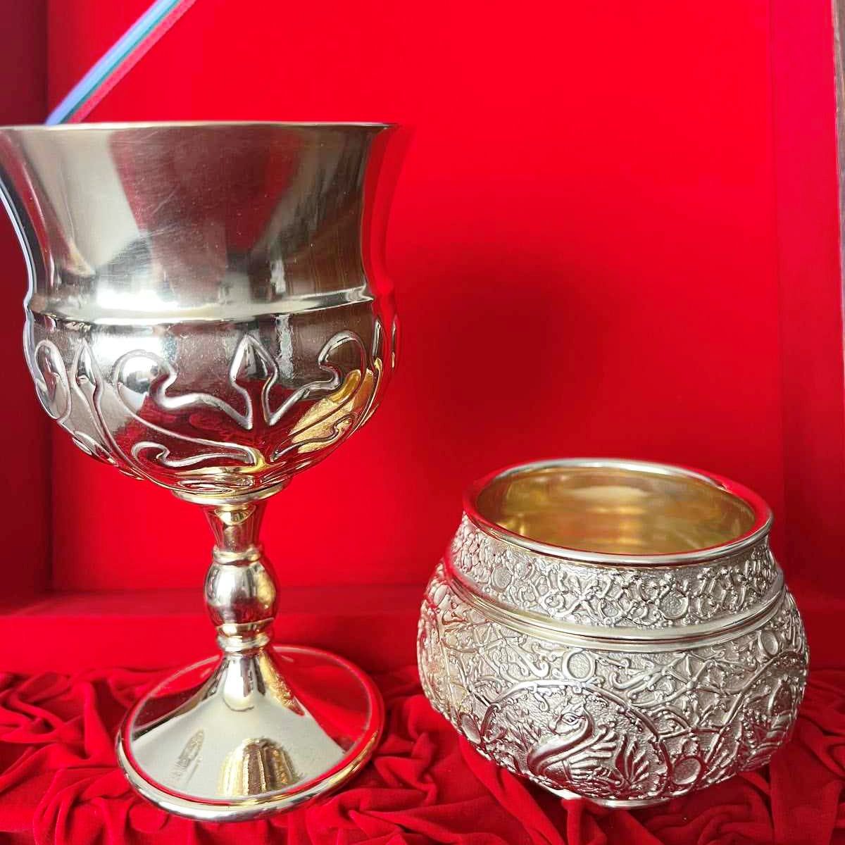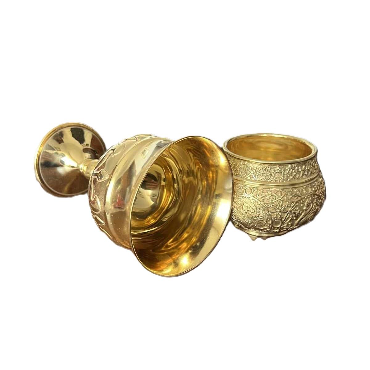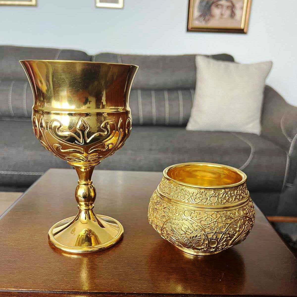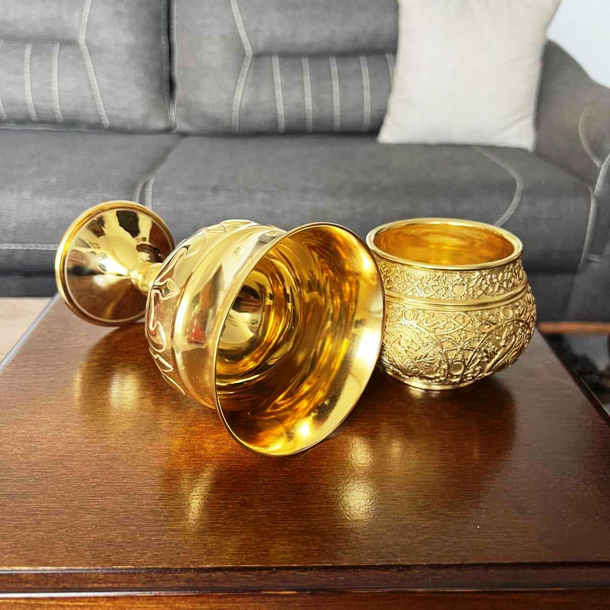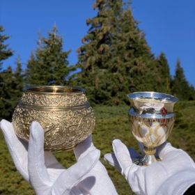 Репликита на царските бокали се изработват от месинг по метода на леенето на скулптури, посребрени са с най-висока проба сребро 999,9 и са позлатени с 24 каратово злато