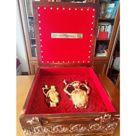 Комплект на големите златни бокали на българските владетели. Комплектът се състои от царските бокали на хан Кубрат и хан Аспарух