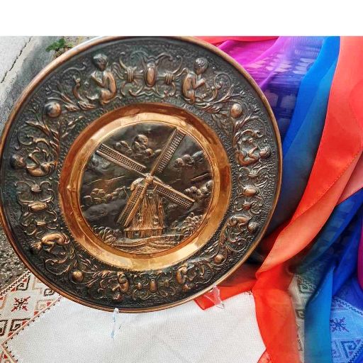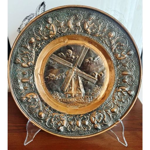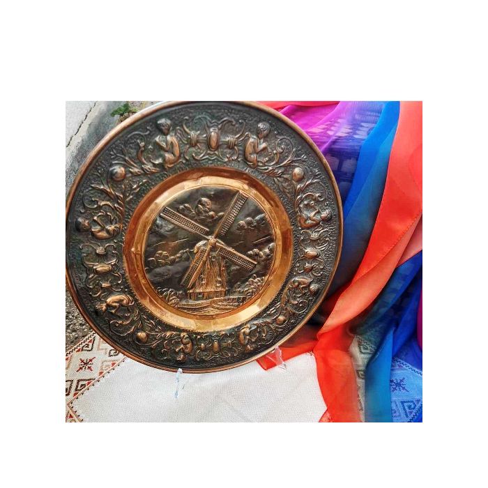 Вятърна мелница, голяма чиния от кована мед, антиквариат