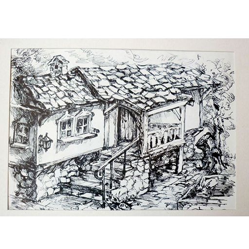 Графика на стара българска къща "Спомени"