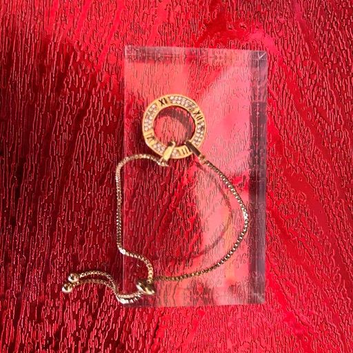 Гривната е изработена от бижутерски метал и синтетичен циркон. Кръгът има обозначение като часовник и символизира времето като част от вечността.