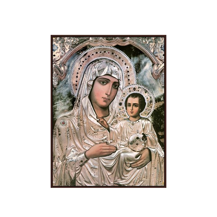 Дървена икона на Св. Богородица 12 с надживописван с темперни бои печат
