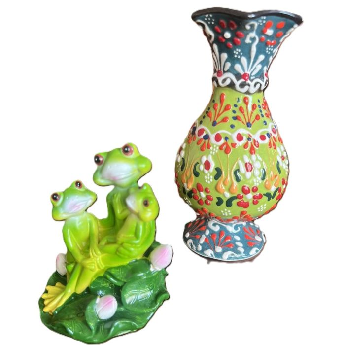 Изобилие - ръчно изработен керамичен комплект от малка пластика на жаба и ваза