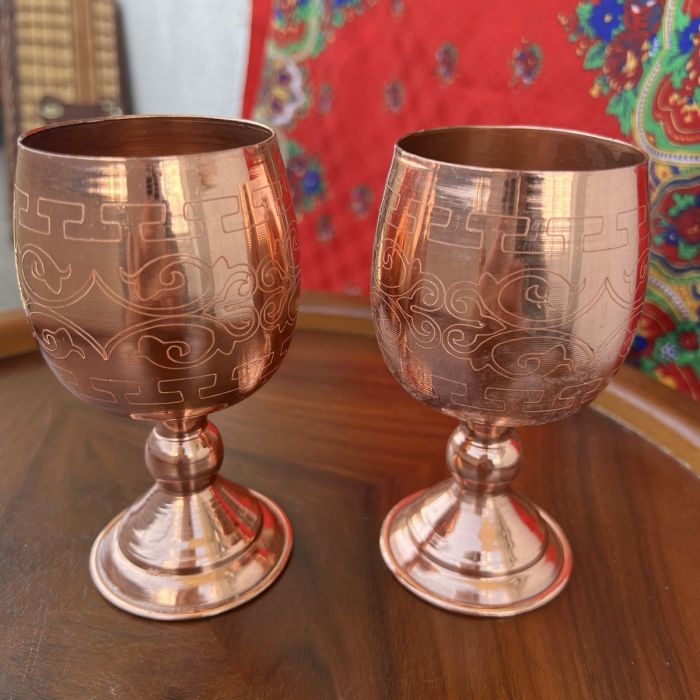 Юбилей, комплект 2 бр ритуални чаши за вино от кована мед