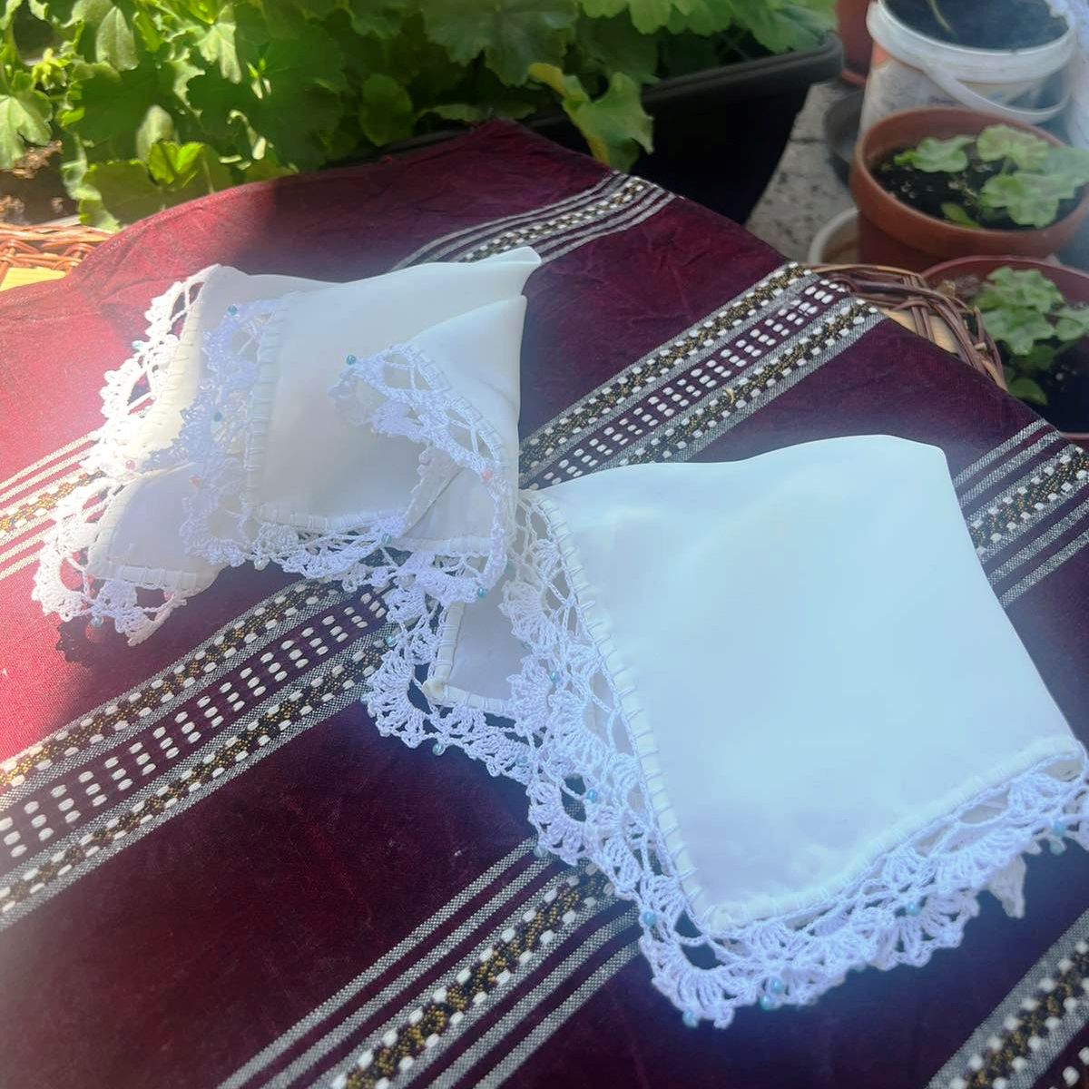 Сватбени, ръчно оплетени с дантела, копринени кърпички с мъниста