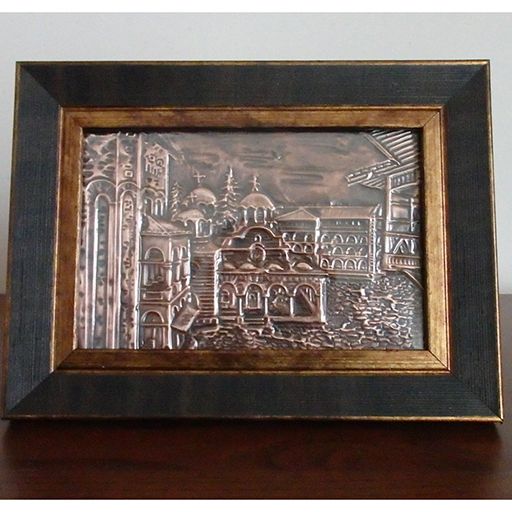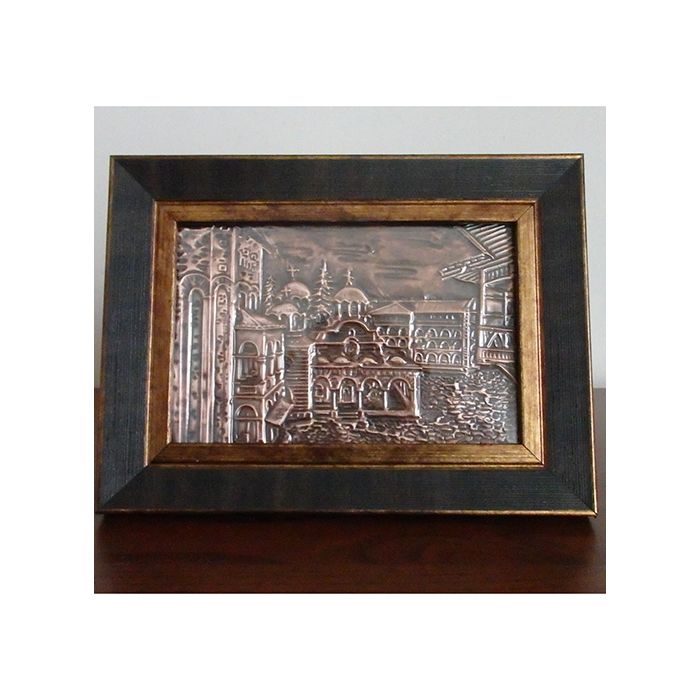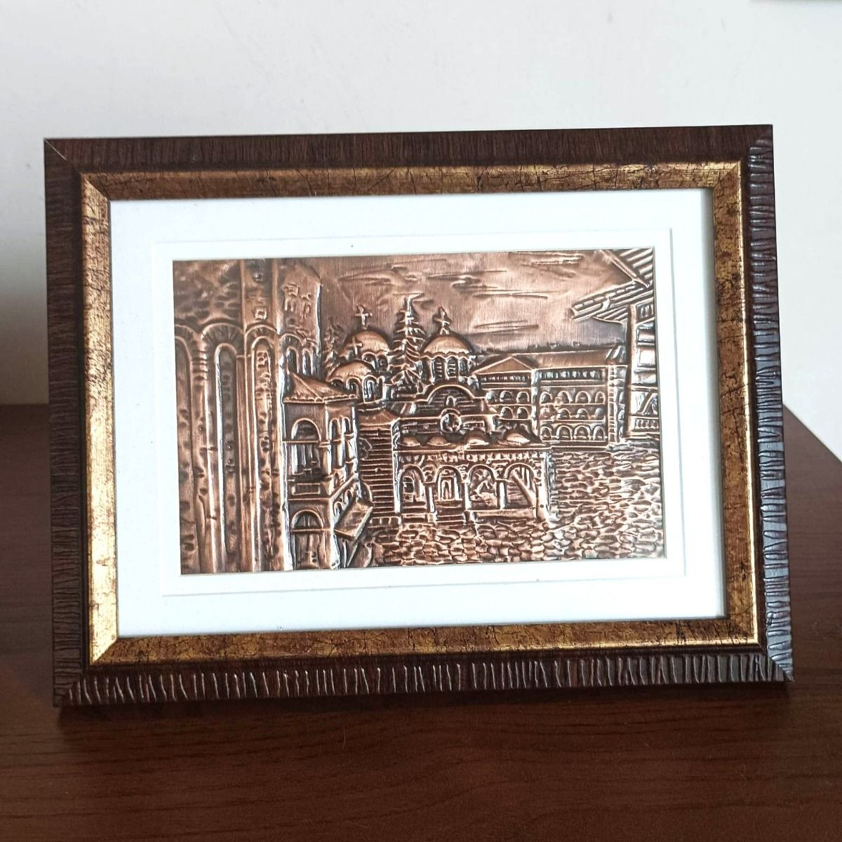 Ръчно изработена картина от кована мед с рамка, Рилски манастир