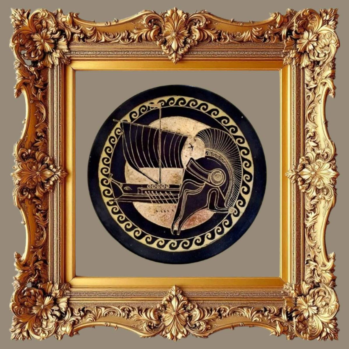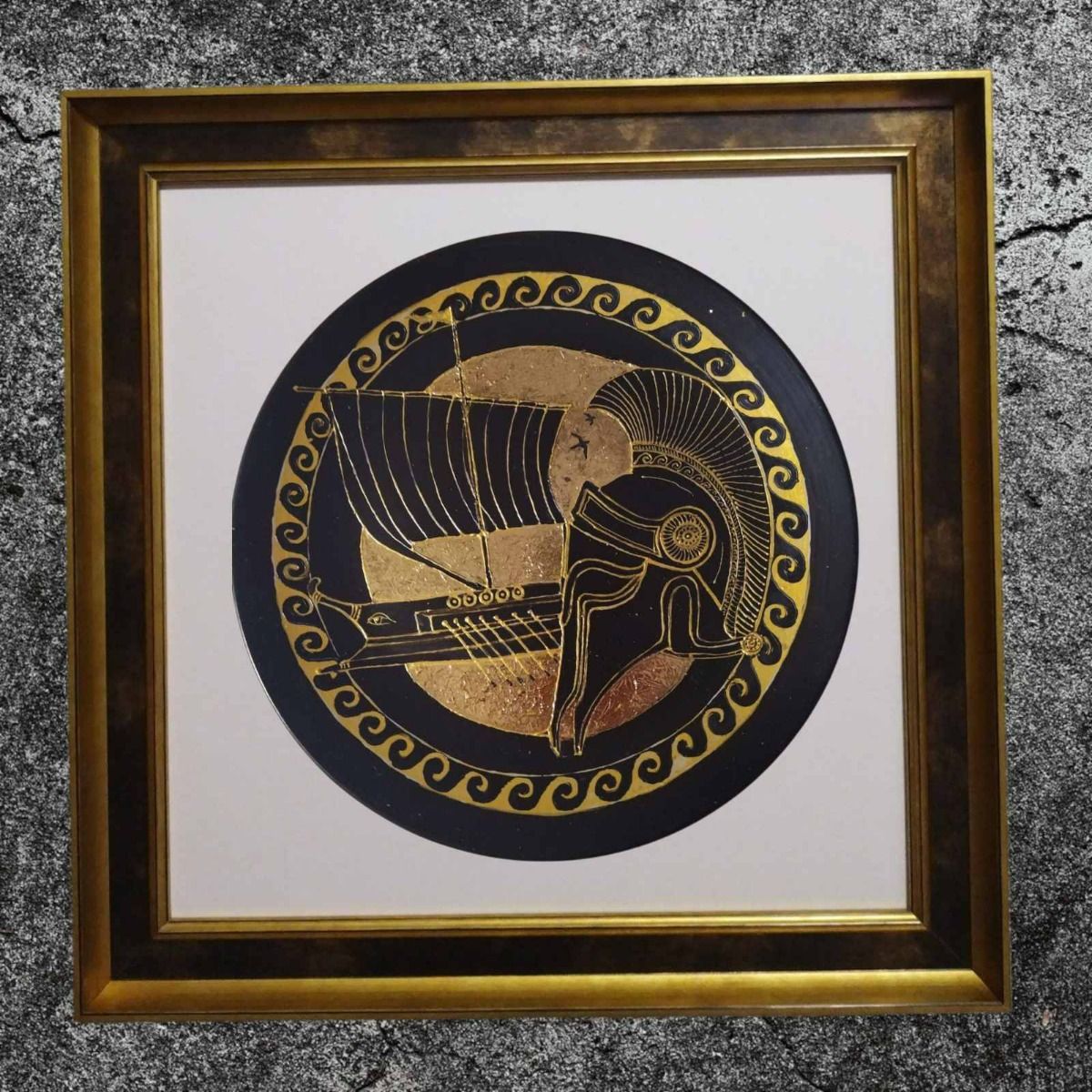 Картина, ръчно рисувана керамика, златен варак "Одисей"