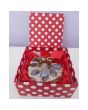 Картонена кутийка за опаковка на подарък - червена на бели точки