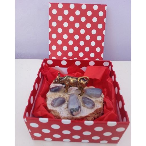 Кутийката е с размери 8,5см х 8,5 см х 4 см.