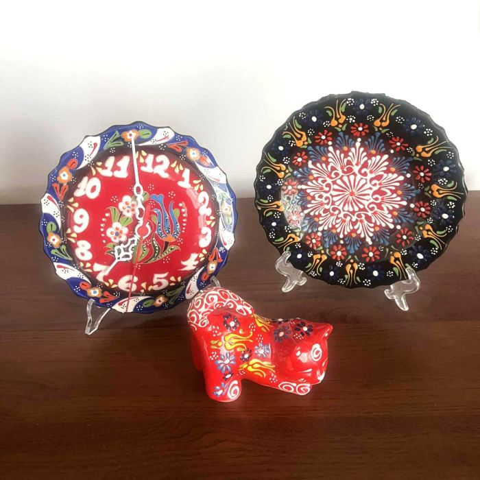 Керамичен комплект "Настроение" - часовник, чиния, котка