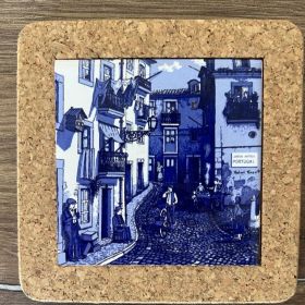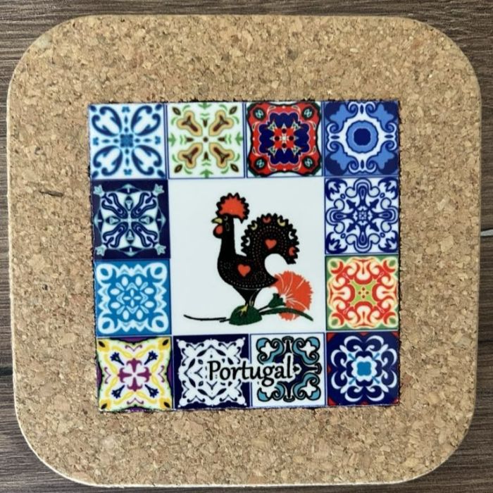 Керамично пано с корк - Португалия, рисувана керамика, което може да служи и за поставка за съдове. Рсунъкът е с характерлни и типични мотиви за Португалия. Керамичната поставка е майсторски вградена в естествен корк. Ефектът е забележителна семпла елегантност!