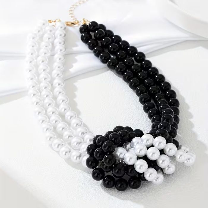Класическа перлена огърлица с два цвята