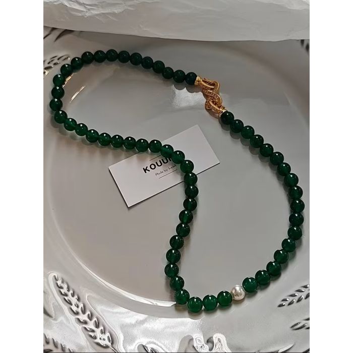 Колие от естествен зелен ахат