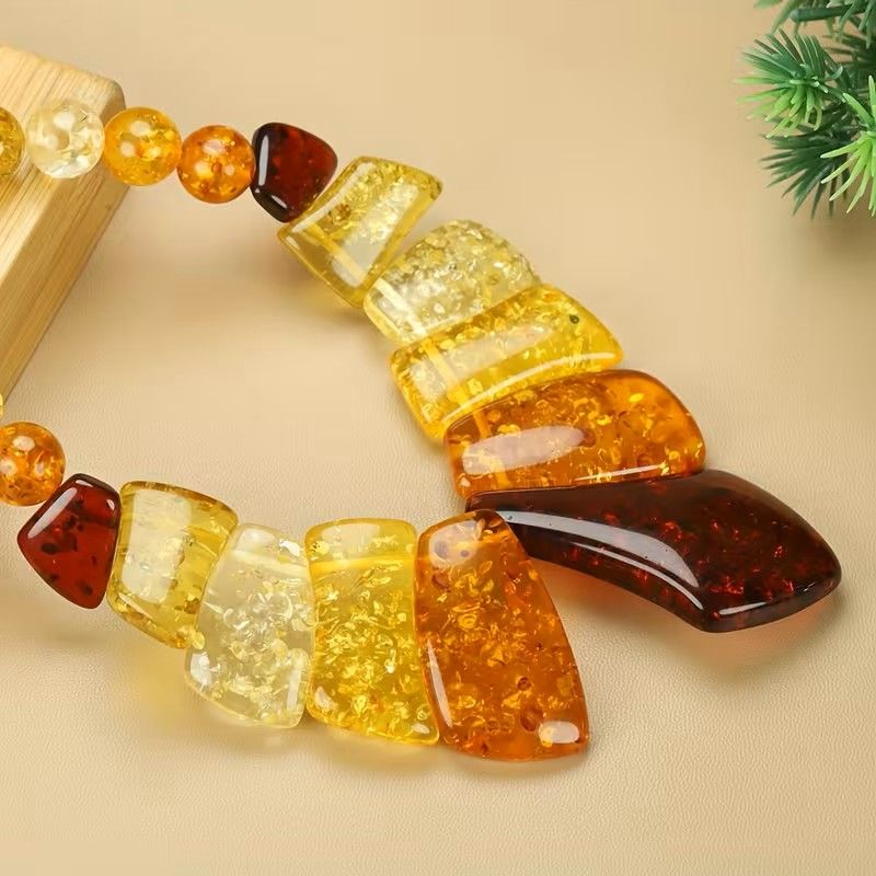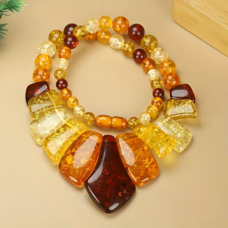 Колие от кехлибар - златно кафяви земни нюанси