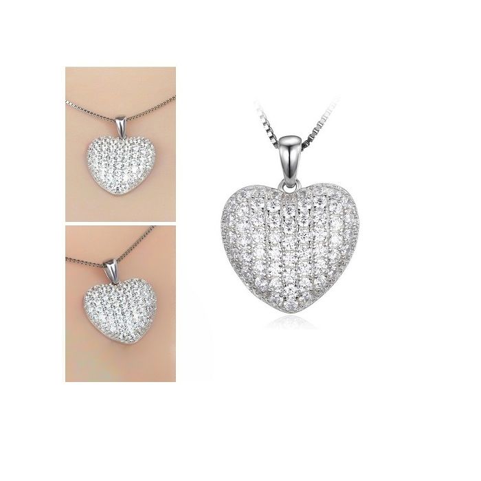 Елегантно, стилно и много нежно колие от масивно сребро 925 и висулка, обсипана с великолепни 1,7 карата кубични цирконии под формата на сърце. Изключително стилно бижу, което ще подхожда на всяко Ваше облекло, като добави заръшващ блясък и женственост на визията Ви.