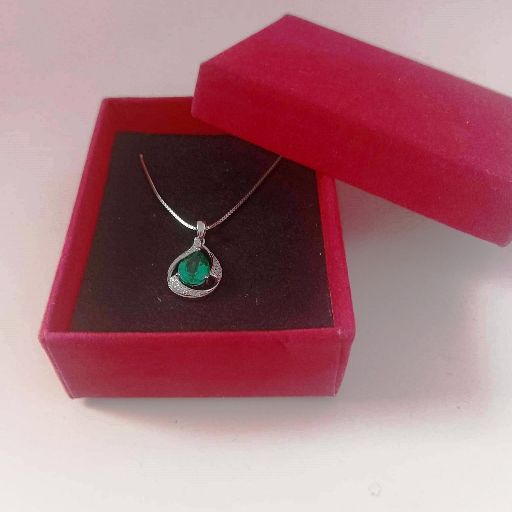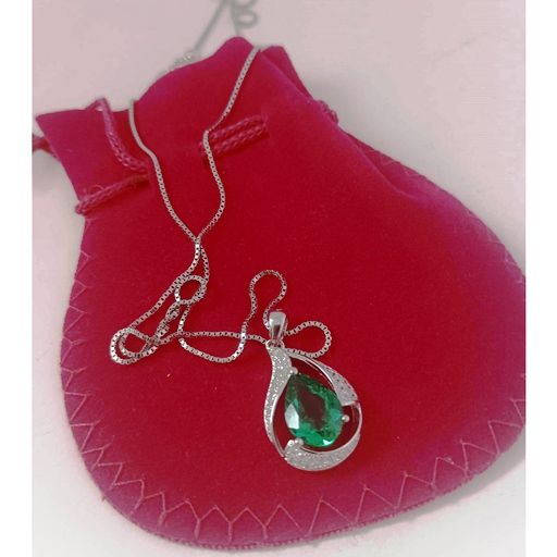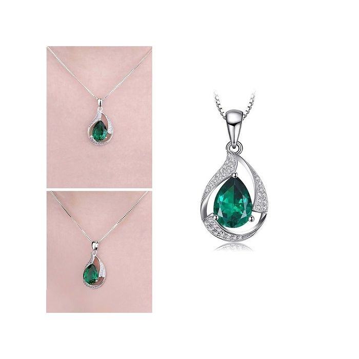 Луксозно колие от масивно сребро 925 с изумруд в капковидна форма.