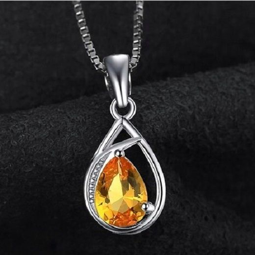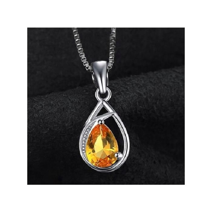 Сребърно колие с оранжев сапфир и бели цирконии.