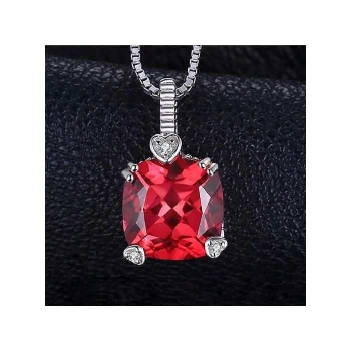 Колие от масивно сребро 925 с рубин. Добавеният детайл сърце с цирконии, превръща бижуто в съвършен подарък за скъп човек. Червеният цвят се свързва с дълбоките чувства, затова рубинът в древността е бил символ на страстта. Вярвало се, че той дава сила и храброст на собственика си, като укрепва сърцето му. Този скъпоценен камък е олицетворение на силната любов между двама влюбени. Невероятно привлекателен и ярък, рубинът очарова хората със своя наситен цвят още от древни времена.