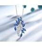 Колие от масивно сребро 925 и сапфири, допълнени от десетки нежни бели цирконии. Синият скъпоценен камък символизира искреността, истината и верността. И тъй като, той представлява Божието благословение, сапфирът е често избиран от висши царе и свещеници. Смята се, че той насърчава радостта, вярата и надеждата у човека. Скъпоценният камък е добър защитник по време на дълги пътувания.
