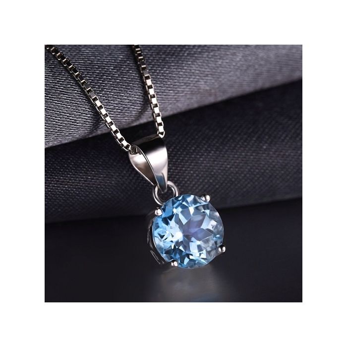 Елегантно колие от масивно сребро 925 с естествен син топаз. Името топаз произлиза от древното название на остров Зебергет в Червено море – Топазос. Това е камъкът-хамелеон, който е символ на мъдростта и богатството. Енергията му е изключително силна. Символизира добротата и може да неутрализира негативната енергия, а хората, които го носят са възнаградени с късмет.