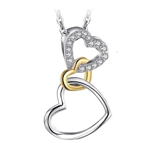Колие от масивно сребро 925 с три сърца. Основният акцент е върху трите нежни сърца, свързани едно за друго, изобразяващи връзката в семейството. Сякаш „хванати за ръка“ , те правят препратка към сплотеността, любовта, грижовността и щастието. Инкрустираните цирконии добавят изключителен блясък на бижуто, а малкото сърчице, сякаш символизиращо детето, е покрито с 18 карата злато.